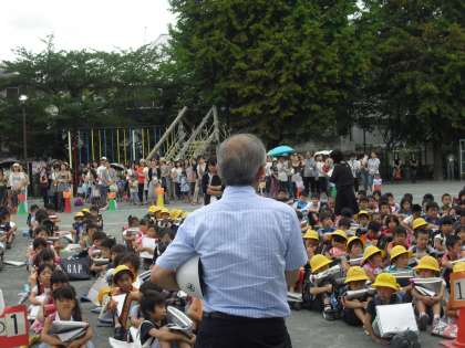9月1日の防災の日 警戒宣言発令時(大地震)の対応の仕方を子どもに身につけさせる。保護者に子ども一人一人を引き渡すことを確実にする。をねらいとして避難訓練を実施しました。