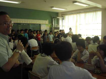「1 WEEK プレ中学生」が(9/7〜10)始まりました。体育館で対面式(写真上)が行われました。グループごとに学校見学(写真中)もしました。6年生の子供たちは、中学校の先生の授業を受けたり、部活動体験をしたり、充実した1日を過ごしました。