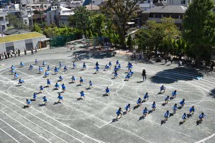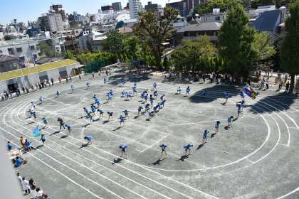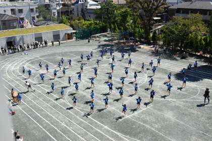 手作りの大漁旗が風に舞い、青のはっぴが空に映えました。体全体を大きく使って大漁を表現することができました。