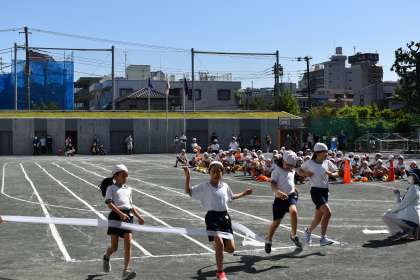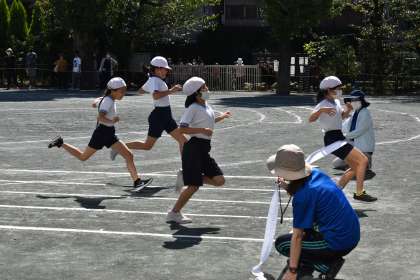 上の写真は3年生、下の写真は4年生です。ゴール地点からの撮影です。