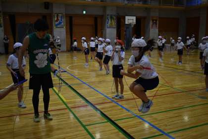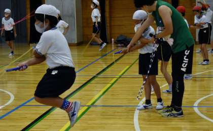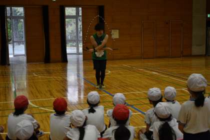 3年生にとっては、2回目のなわとび教室でした。呑み込みが早くて、わずか1時間の中で交差跳びやあや跳び、二重跳びに加え、側振跳びも教えていただくことができました。決めポーズも様々な種類に挑戦しました。ひじき先生からたくさんほめていただき、満足していました。ぜひ、これからも練習を続けてほしいです。