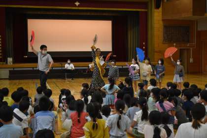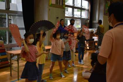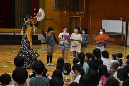 代表の子どもが「アバニコ」というスペインのおせんすを持たせていただきました。みんなやりたくてたまらない様子です。