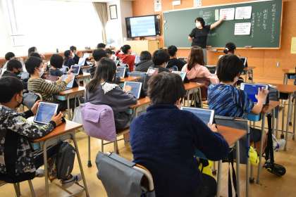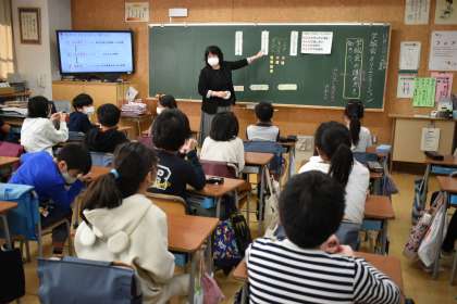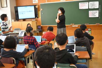 4年から6年でカリキュラム開発研究の授業を実施しています。今回は、学級会「オリエンテーション」の授業をしました。学級会を進める上での心構えについて確認したり、意見を出すときには根拠を示すことが必要であることをタブレットを使って体験しました。