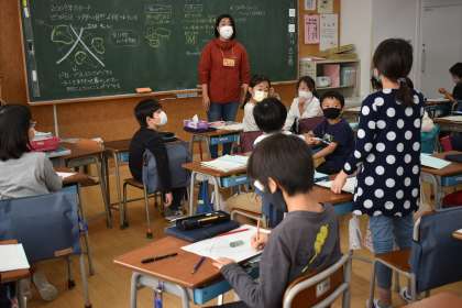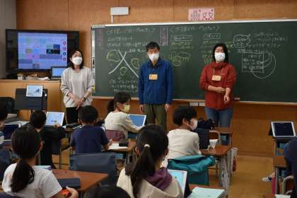 3年総合「ビオトープ大かいぼう」では、ビオトープギルドの小沢さんと遠山さんから、ビオトープの活動がどのように世田谷区の学校で始まったのか、地域によってビオトープにはどんな違いがあるのかを詳しく教えていただきました。子どもたちは、iPadを使って、教えていただいたことをもとに学習発表会の台本を作成していました。どんな発表会になるのか今から楽しみです。