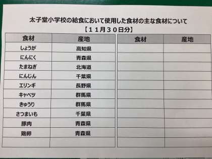 11月30日(火)の給食