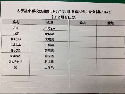 12月6日(月)の給食