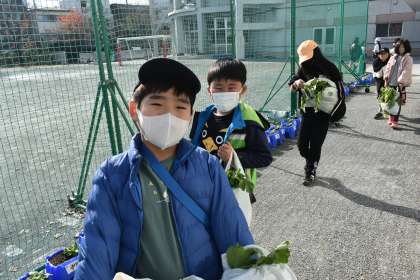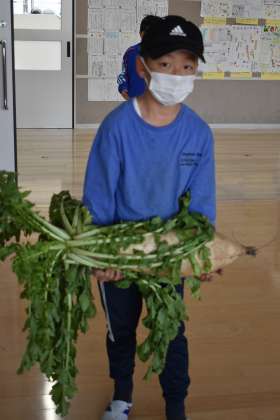 3年生は、秋山農園へ「大根抜き」に行きました。見事に成長した大根を抱えてにこにこしながら帰って来ました。3年生の保護者の皆様、調理をよろしくお願いいたします。