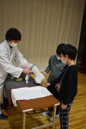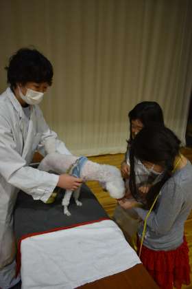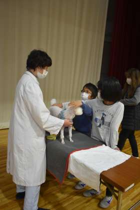 犬のコーナーでは、犬をなでたり、えさをやったりしました。犬は、とてもおとなしくしていました。