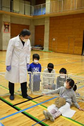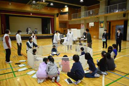 うさぎコーナーでは、本校で飼っているキャロットときなこが交替で登場。民生児童委員や学校支援コーディネーターの方も消毒や用具準備などで授業を支えてくださいました。東京都教育委員会や世田谷区教育委員会の方たちも視察に来られていました。