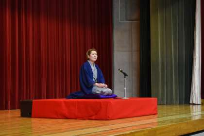 今日のゲストティーチャーは、林家木久扇一門の林家扇(せん)さんです。子どもたちの反応を見ながら、学年に合わせて、お話を選んでくださいました。1・2年生は、「元犬」という話でした。子どもたちは、大喜びでした。お帰りのときに、お手紙を直々に渡しました。
