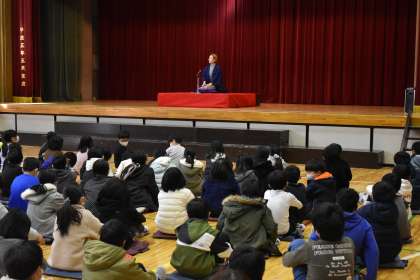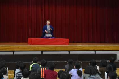 3・4年生は、「こうもり」という話を聞かせていただきました。とても集中して聞いていました。4年生が感想とお礼の言葉を言いました。