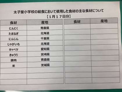 1月17日(月)の給食