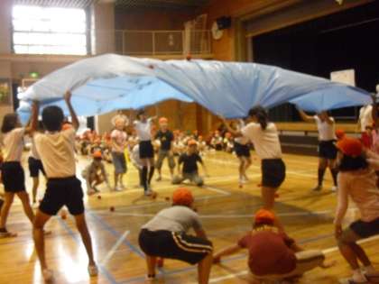 児童集会(9月22日)音楽朝会(9月29日)体育集会(10月6日)の様子です。集会委員会は楽しいゲーム「?君をさがせ!」を企画してくれました(写真上)。音楽委員会は『マル・マル・モリ・モリ』の演奏で音楽朝会(今月の歌は「少年時代」)を盛り上げてくれました(写真中)。体育集会「シートで玉入れ」では学年紅白で楽しく対抗戦を行いました(写真下)。5・6年生の活躍 すばらしかったです。
