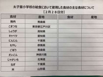 2月28日(月)の給食