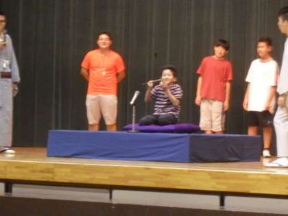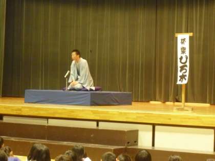 林家ひろ木さん、林家けい木さんの二人の噺家が来校して落語鑑賞教室が行われました。低学年は2校時、高学年は3校時に鑑賞しました。笑顔と笑い声が体育館いっぱいに広がり、楽しい楽しい時間になりました。