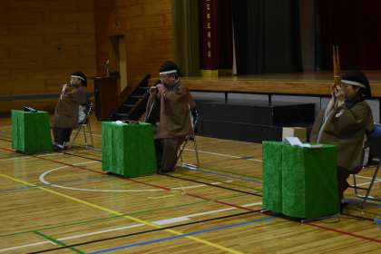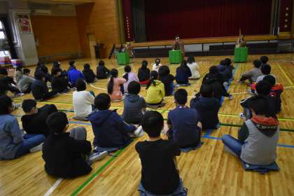 今年度も、6年生は、雅楽鑑賞教室を実施しました。笙(しょう)や篳篥(ひちりき)、竜笛(りゅうてき)という楽器についての説明や雅楽の歴史などについてお話をうかがったり、「越天楽」の演奏や当時の歌を聴かせていただいたりしました。6年生の子どもたちはとても真剣に聴いていました。質問コーナーでは、「笙(しょう)という楽器を演奏していないときにもくるくると回しているのは電熱器で温めて乾燥させるためであることや太子堂の町に招かれて演奏していることなどが分かりました。いにしへに思いをはせて豊かな時間を過ごすことができました。