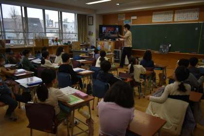 今日は、音楽集会でした。音楽委員会の演奏による今月の歌「世界が一つになるまで」をテレビで見ながら、各学級で元気に合わせて歌っていました。
