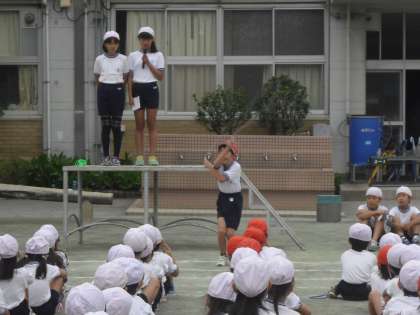 運動委員会による【なわとび体育集会】がありました。前半は運動委員の短なわとびの<技>の発表があり、すばらしい技能に大拍手でした。後半はみんなで短なわとびをしました。体力づくりをしながら技も磨いていってほしいです。