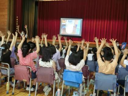 東京水道局による出前授業「水道キャラバン」が今年度も開催されました。4年生が、主に水源林、ダム、浄水場について学びました。