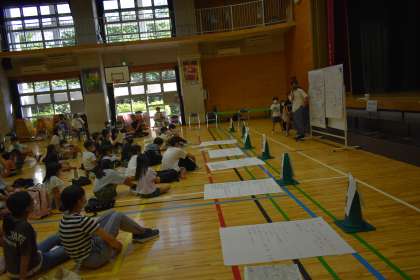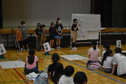 グループごとに話し合ったことを中学生のリーダーが中心になり、工夫して発表していました。小学生を気遣う様子も随所に見られ、頼もしく、うれしい気持ちになりました。きっと小学生は、自分もそうなりたいと思ったに違いありません。中学生の皆さん、ありがとうございました。