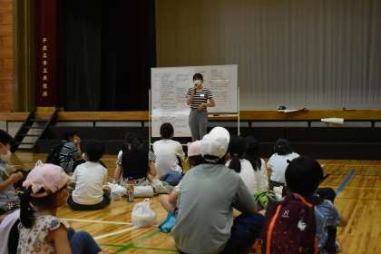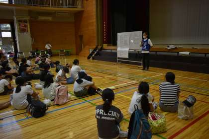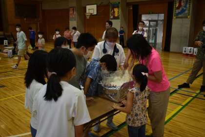 アルファ米が出来上がりました。アイスブレイクの後、閉会式は、実行委員長、校長先生のごあいさつに続き、中学生の代表が立派にしめくくってくれました。ご協力いただいた地域・保護者の皆様のおかげでサバイバルキャンプを無事終了することができました。本当にありがとうございました。