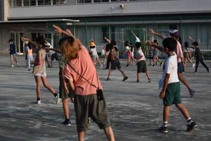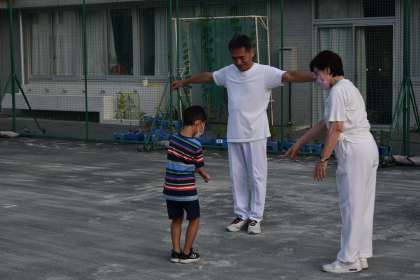 ラジオ体操3日目。伸ばすときには伸ばす、曲げるときには曲げるなど、メリハリが付いてきました。終了後にすすんで先生に質問に行くお子さんもいました。世田谷区ラジオ体操連盟の先生方は、喜んでコツを教えてくださっていました。