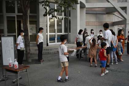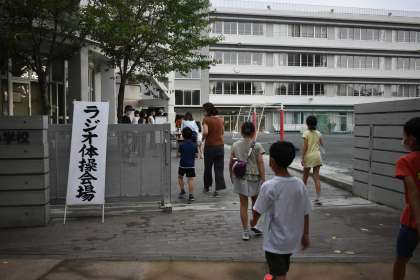ラジオ体操4日目。集う子どもたちと受付の様子です。ラジオ体操委員会の皆様が6時に集合して準備から後片付けまですべての運営をしてくださっています。本当にありがとうございます。
