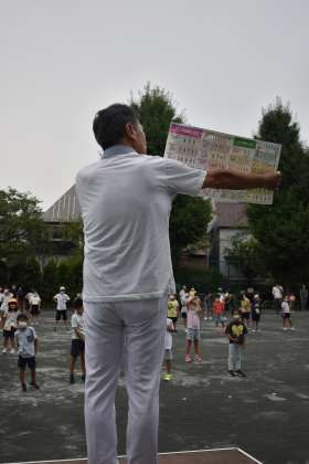 ラジオ体操5日目。いよいよ最終日です。世田谷区ラジオ体操連盟会長 萩原 光雄様とラジオ体操1級認定指導士 雑色 真理子様が、5日間、ラジオ体操についてご指導くださいました。参加した子どもたちには、「世田谷区 ラジオ体操MAP」のパンフレットをくださいました。ラジオ体操第1と第2の立位についての分かりやすい説明も掲載されています。ぜひご活用ください。