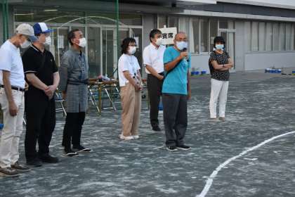 「第56回 太子堂ふれあいまつり」を太子堂小学校校庭で実施しました。開会式の模様です。太子堂ふれあいまつり実行委員長に続き、太子堂小学校長、太子堂中学校長、地域振興課長のごあいさつとご来賓の紹介がありました。