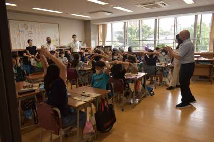 第1回 学校関係者評価委員会を実施いたしました。学校関係者評価委員長及び委員の皆様に3年生以上の学級の参観をしていただきました。4年生は、国語「新聞を作ろう」と外国語「おすすめの文房具セットを作ろう」。3年生は、体育「着衣泳」です。