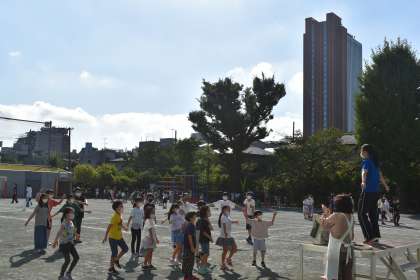 秋晴れの下、2・3・5年「チャレンジタイム」でした。たてわり班に分かれて、自分たちのメニューに楽しみながら取り組んでいたました。スポーツの秋到来。休み時間や放課後なども、体をすすんで動かすように働き掛けています。
