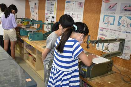 5年図工「太子堂カフェにようこそ」では、授業のはじめに、実際にまちにあるおしゃれなカフェの外観や内装を大型テレビの写真で見て、どんな工夫がされているのかを探りました。そして、「太子堂にあったら大繁盛間違いなしのカフェ」をテーマに取り組みました。電動のこぎりを使って板を切ったり、組み立てたり、絵の具で色を塗ったりと想像を膨らませながら作成していました。展覧会が楽しみです。