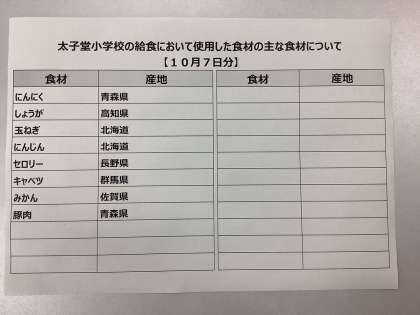 10月7日7日(金)の給食