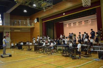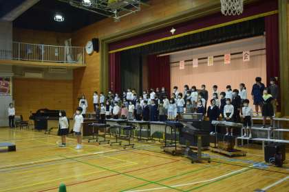 3年生は、 歌「いのちのオーケストラ」、合奏「チキチキバンバン」