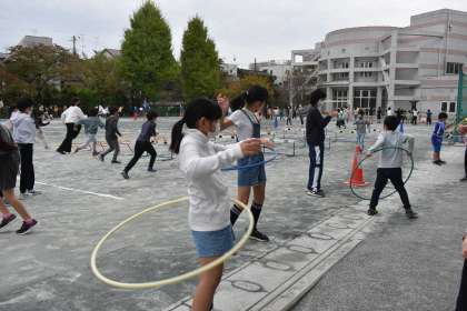 「チャレンジタイム」は、朝の15分間で様々な運動を理解するとともに、運動することに親しみをもつ、たてわり班を活用して高学年児童のリーダーシップを養うことをねらいに取り組んでいます。