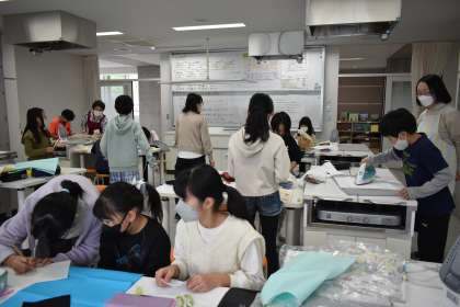 5年生は、、ミシンにはじめて挑戦し、クッション制作に取り組んでいます。今日は、布にアイロンをかけたり、図案を考えたりしていました。毎回、地域のボランティアの方や小学校のスタッフが応援に行くようにしています。思いのこもった作品が出来上がるとよいです。