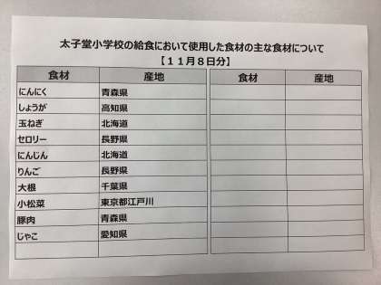 11月8日(火)の給食