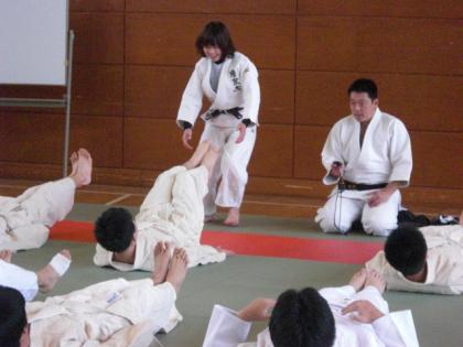 太子堂小学校若手のホープ高梨ゆかり教諭が太子堂中学に出向き、中学1年生と3年生の武道「柔道」の授業を中学校新妻弘樹教諭とTTで行いました。柔道着姿の高梨教諭はいっそう凛々しく、太子堂中学校生徒に的確に指導していました。このような教員同士の交流も世田谷9年教育のひとつの取り組みです。