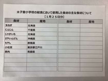 1月25日(水)の給食