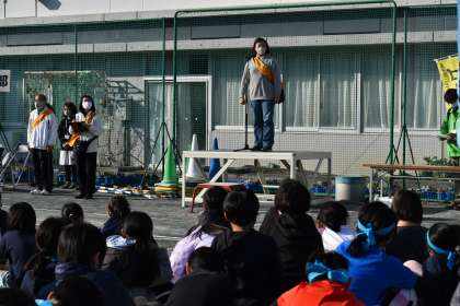 中里小学校の校長先生からご講評をいただき、太子堂小学校のPTA会長のご挨拶で閉会となりました。お陰様で、大晴天に恵まれ、無事故・大成功で太子堂子どもマラソン大会が終了いたしました。太子堂こどもマラソン大会実行委員会の皆様をはじめ、地域・保護者の皆様、本日までのご準備から後片付けにいたるまで、本当にありがとうございました。子どもたちも大満足で帰って行きました。感謝の思いでいっぱいです。