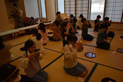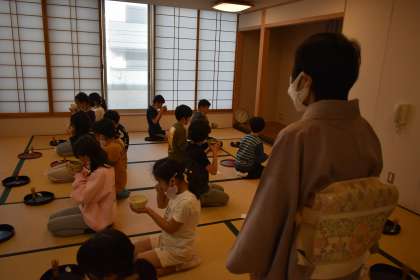 教えていただいたことを一つ一つ確かめながら、お茶をたてたり、いただいたりしました。挨拶もしっかりとしていました。