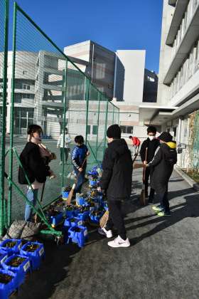 毎週木曜日の始業前に、6年生が「ボランティア活動」で校庭の清掃をしてくれています。今日は、職員室の前のプランターを1つ1つ移動させながら落ち葉やゴミをほうきで取り除いてくれていました。すすんで役にたとうとする気持ちが嬉しいです。