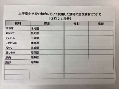 2月21日(火)の給食