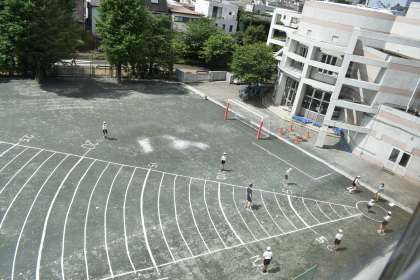 6月13日(火)今日は梅雨の晴れ間に体力テストが行われています。1.2時間目は1年生と6年生がペアになってソフトボール投げや反復横とびなどの種目に取り組んでいます。3.4時間目には2年生と5年生、5.6時間目には3年生と4年生が実施します。(10:00現在)