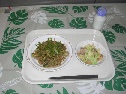 本日のメニュー『ソース焼きそば・シーザースサラダ・牛乳』