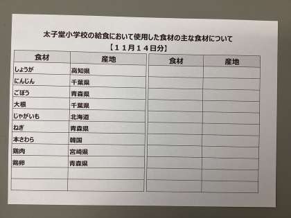 11月14日(火)の給食