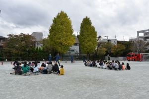 11月15日(水)毎月実施の避難訓練の後に、消火器訓練を6年生が行いました。火事を発見した時の発声から、消火器の火元への移動、正しい使用方法による消火までの一連の流れを参加者全員で体験することができました。
