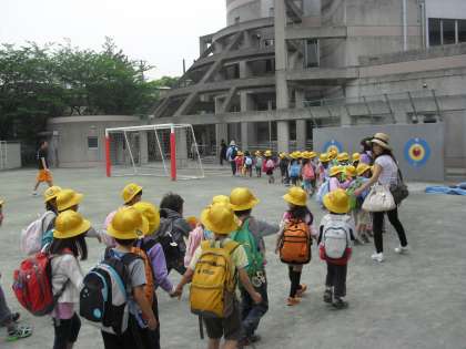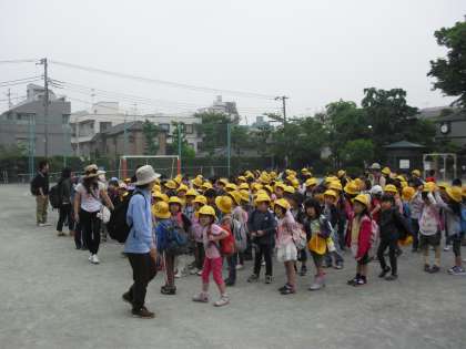 出発式の後、元気なあいさつとともに砧公園に向けて出発しました。