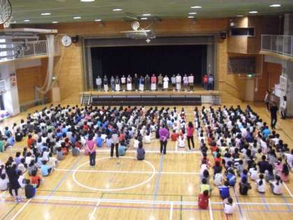5,6年生の発表に低学年も真剣に聞いていました。