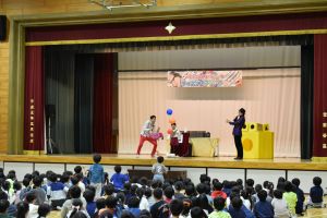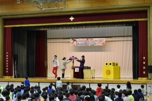2月19日(月)学校公開3日目の3.4時間目に体育館で、サイエンスショーが行われました。これは東京都の「笑顔と学びの体験活動プロジェクト」として、子どもたちに楽しい学びを提供する取り組みです。日本だけでなく世界で活躍する芸人「キャラメルマシーン」の二人組をお招きして、科学的なものの見方をマジックを通して分かりやすく教えていただきました。本物を間近で体験しながら学ぶ貴重な1時間となりました。本当にありがとうございました!